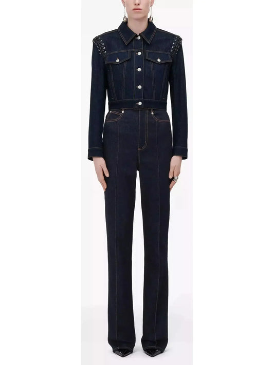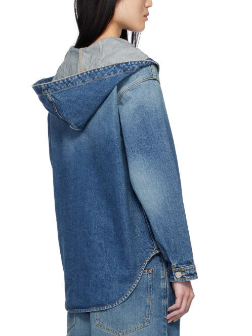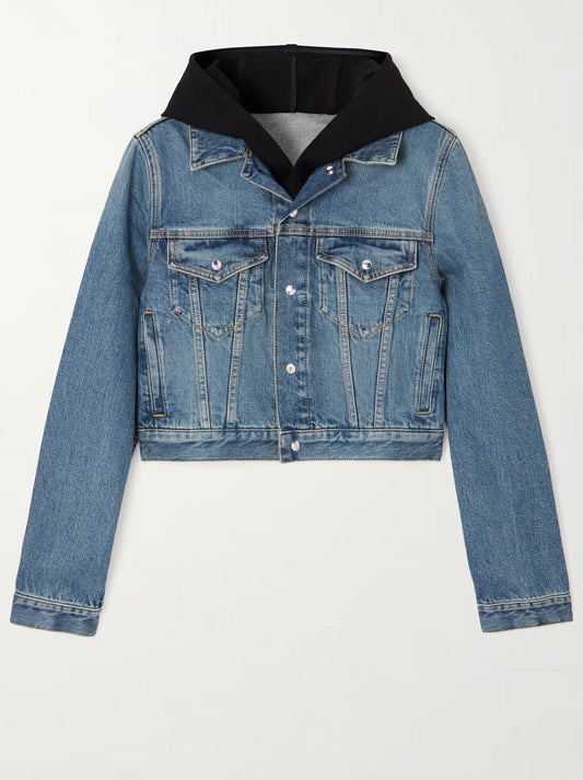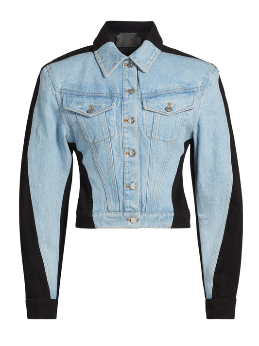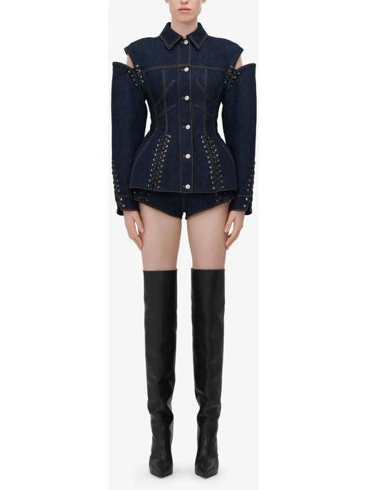 Corset Style Open-Shoulder Denim Jacket with Lace-up Details