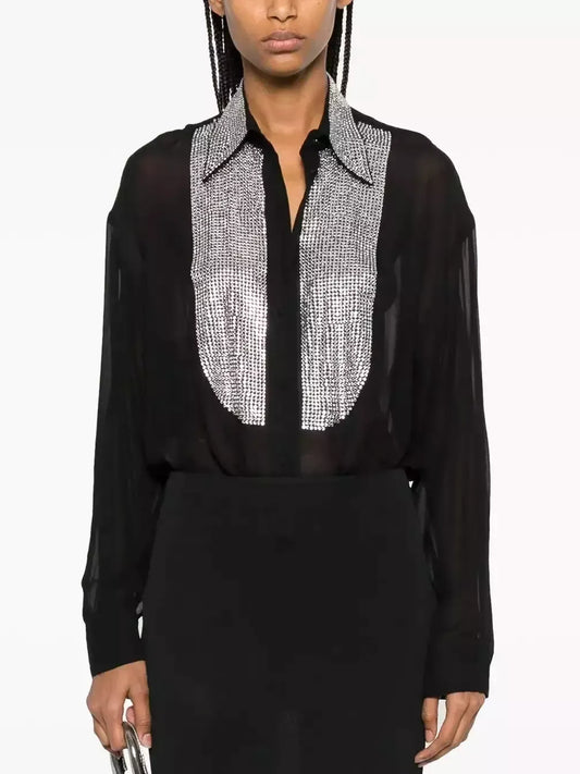 Crystal-Embellished Sheer Black Shirt