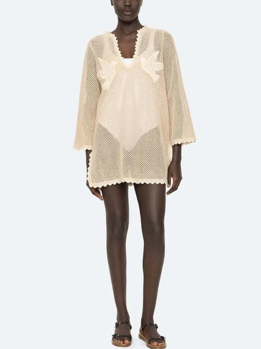 Embroidered Crochet-Knit Cover-Up Long Top