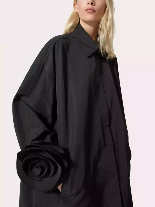 Floral-Applique-Cuff Long Sleeve Shirt in Black