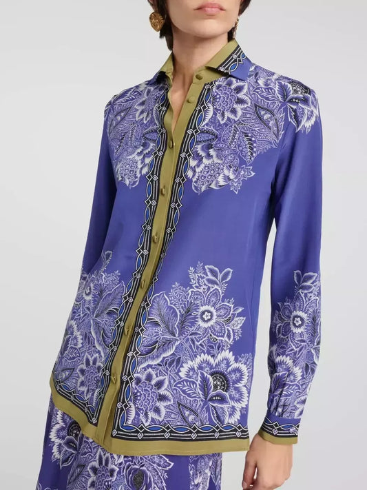 Floral Bouquet Print Silk Shirt