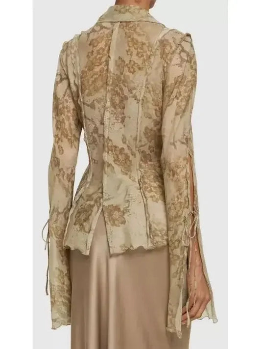 Floral Print Silk Chiffon Sheer Blouse