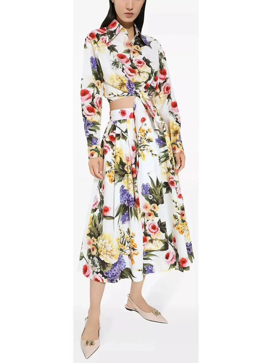 Garden Print Cropped Knotted Shirt