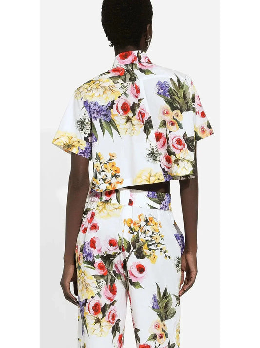 Floral Motif Cropped Short-Sleeve Shirt