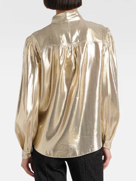 Gold Lamé Tie-Neck Shirt