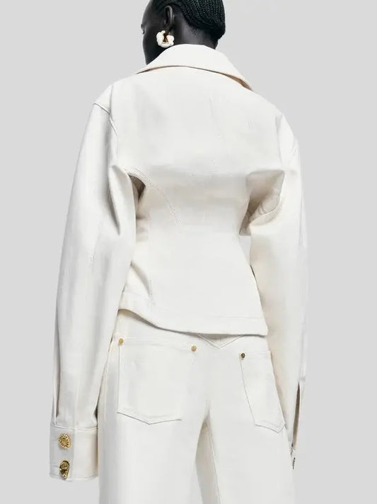 Gold Metal Detailed Denim Shirt Jacket