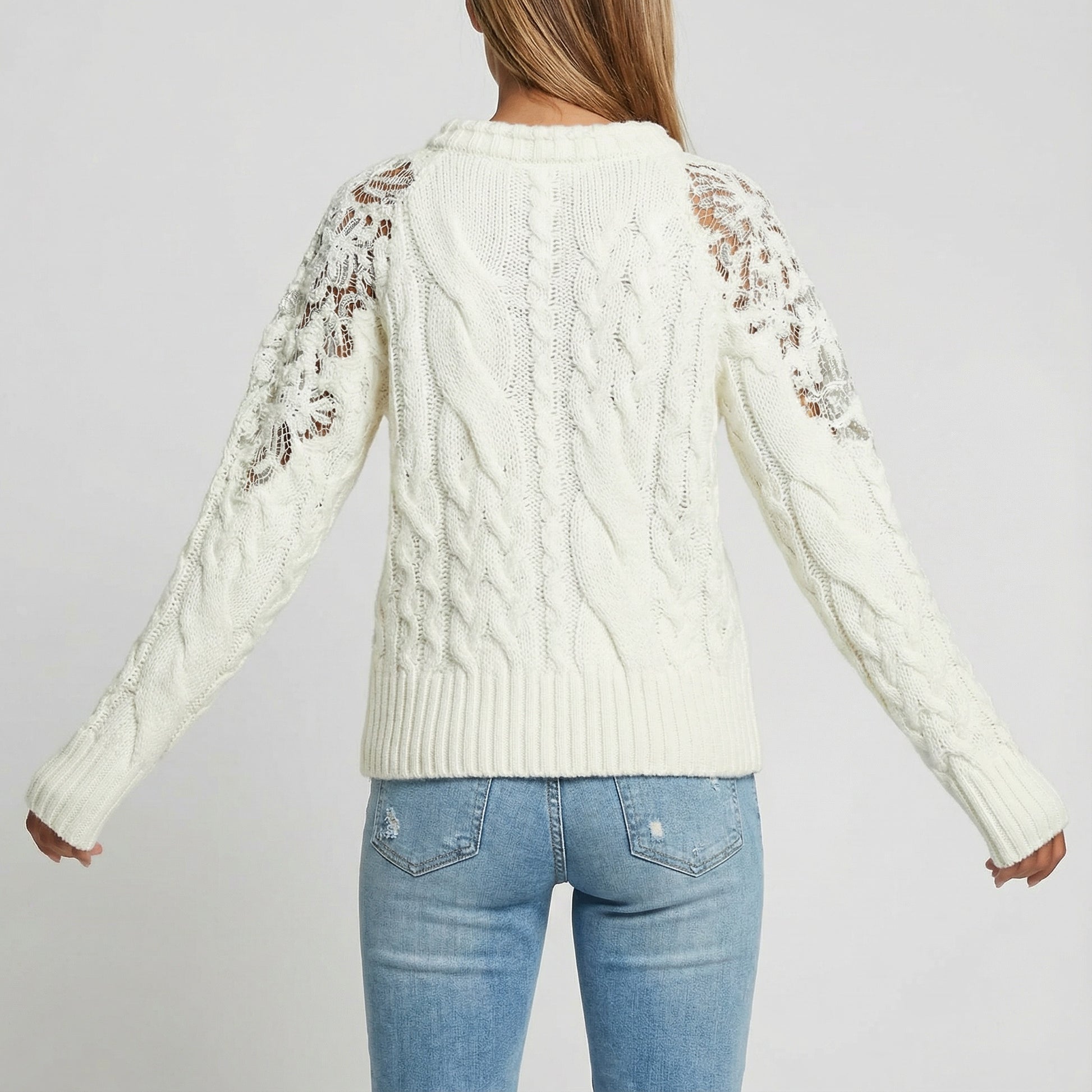 Shop Our Cable-Knit Sweater with Lace-Detail Sleeves Today!
