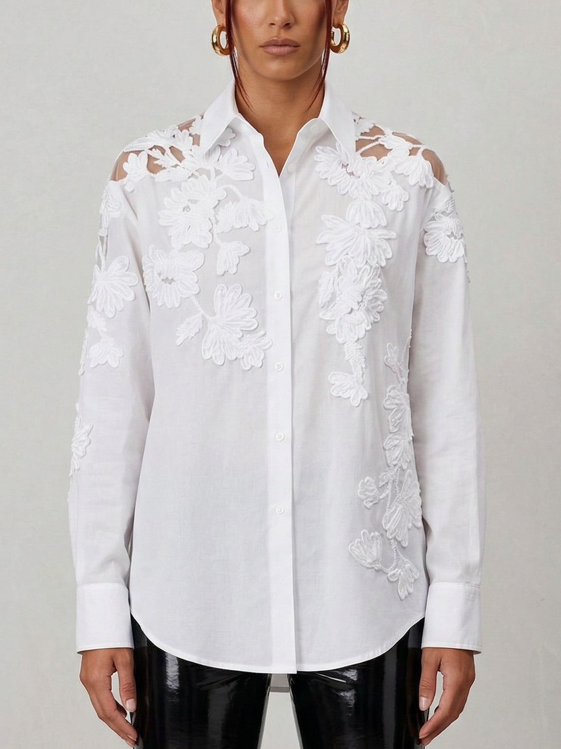 Shop Our Floral Embroidered White Cotton Shirt Today!