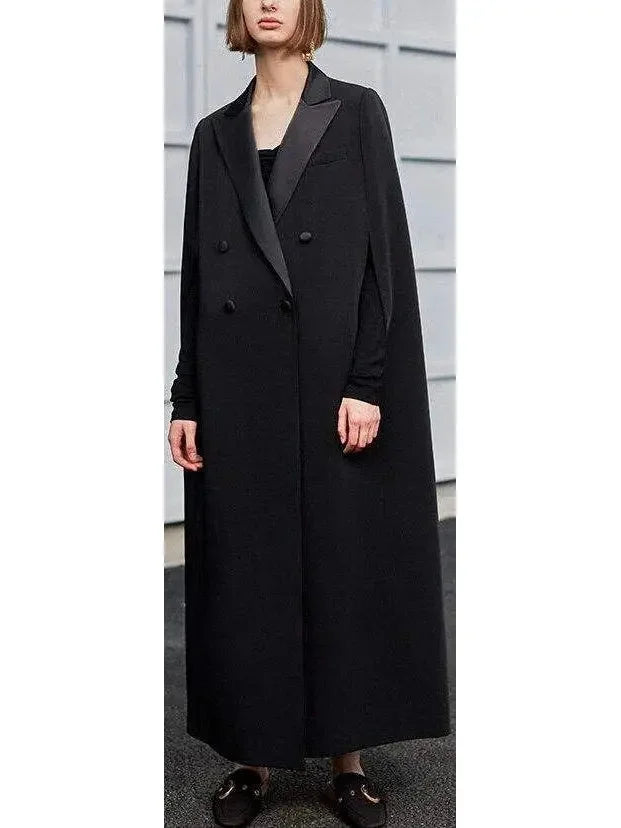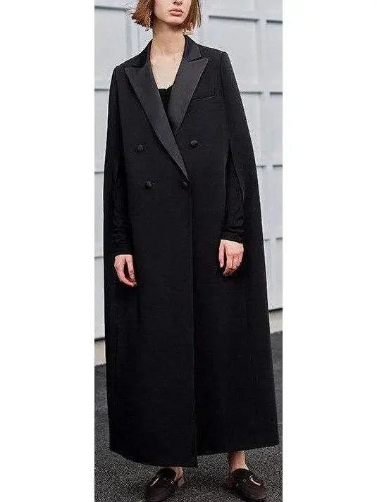 Our Long Black Cloak Coat is a standout piece from Branna Couture, designed for women who appreciate modern luxury fashion.